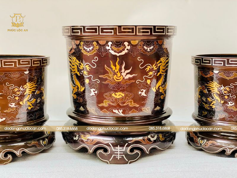 Bề mặt bát hương được khảm thủ công từng nét, tạo nên chiều sâu và độ nổi độc đáo.