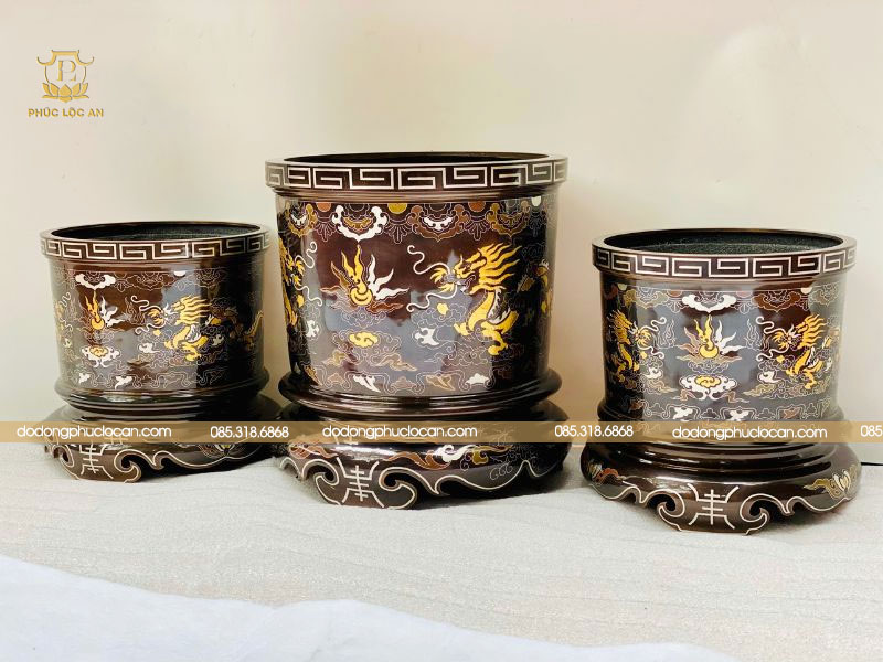 - Chất liệu: Đồng đỏ khảm ngũ sắc (vàng – bạc – đồng xanh – đồng đen – đồng đỏ)