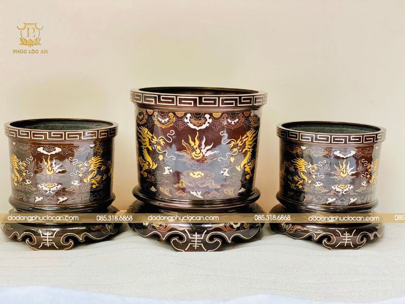 Bát Hương Bằng Đồng Đỏ Khảm Ngũ Sắc là một trong những dòng đồ thờ cao cấp tại Phúc Lộc An, được chế tác theo phương pháp đúc thủ công truyền thống. Sản phẩm nổi bật với màu sắc sang trọng, độ bền vượt trội và hoa văn sắc sảo – phù hợp cho mọi bàn thờ gia tiên, bàn thờ Phật, thần linh.