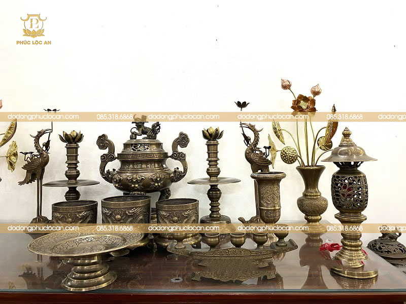 - Độ bền cao: Đối với sản phẩm đồ thờ làm từ đồng thanh khiết và xử lí tốt bề mặt cho độ bền từ 20 – 30 năm, thậm chí lâu hơn nữa. Màu sắc sẽ hạ màu trầm cổ đẹp.