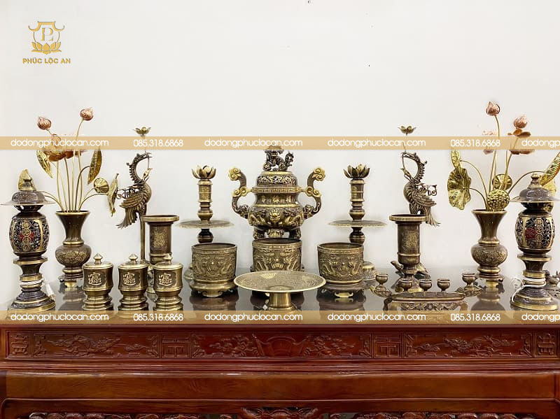 Bộ đồ thờ đầy đủ đồng vàng hun giả cổ – hoa văn dơi đào cao 60cm cho không gian thờ cúng được nhiều khách hàng lựa chọn tại Đồ Đồng Lộc Nam. Vậy ngay sau đây hãy cùng tìm hiểu xem sản phẩm này có đặc điểm gì cùng chúng tôi nhé!