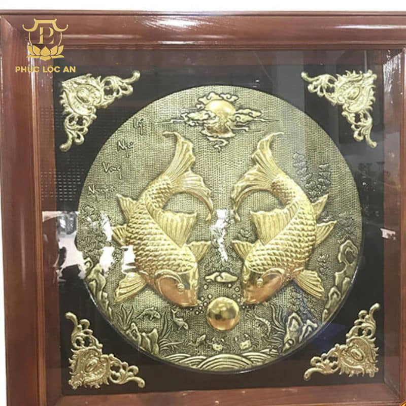 Tranh Lý Ngư Vọng Nguyệt Bằng Đồng Nguyên Chất