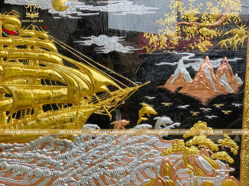 Bức tranh đồng mạ vàng bạc còn được ví như con thuyền chở đầy tài lộc, xuôi gió mang vận may và thịnh vượng về cho gia chủ.