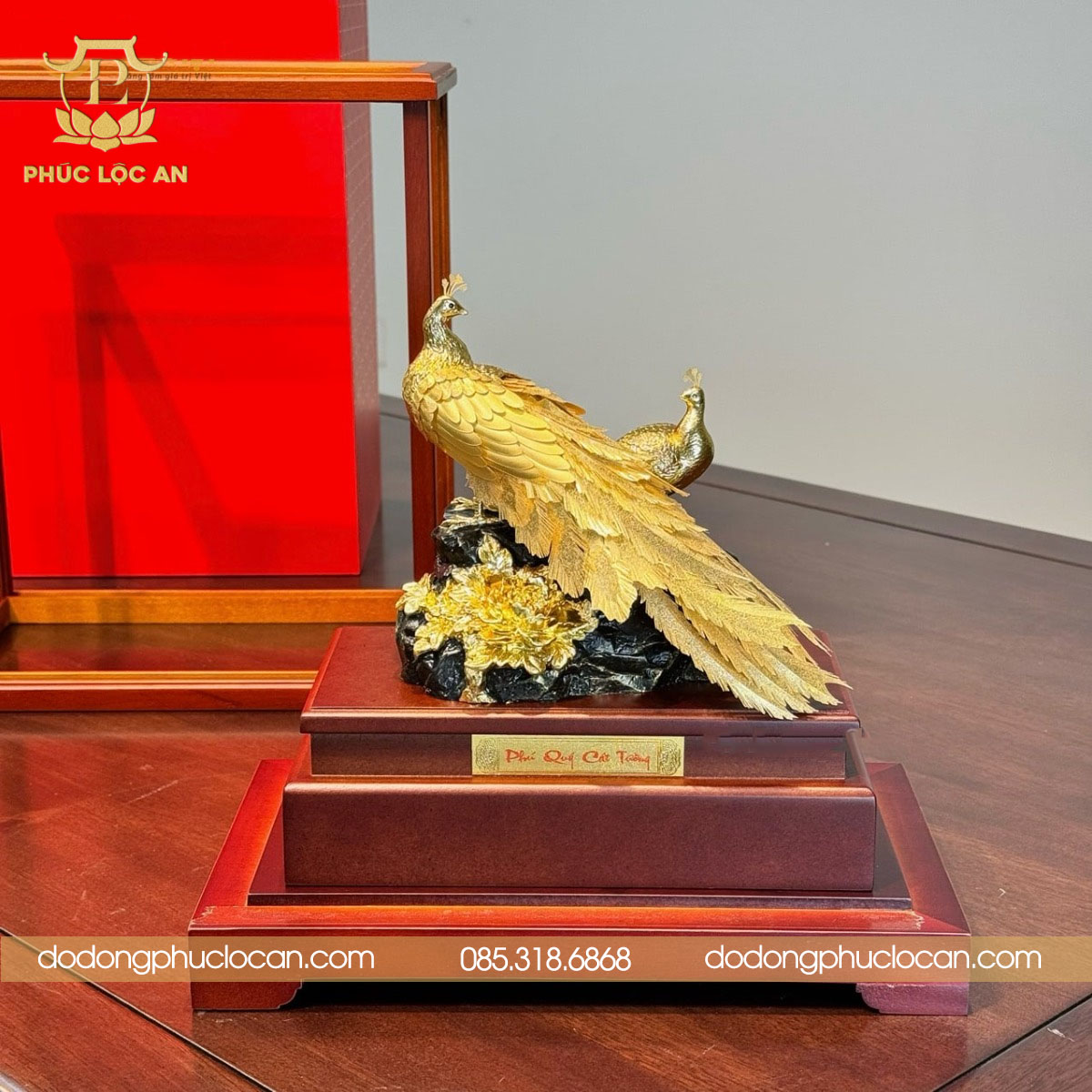 Tượng Đôi Chim Công Vinh Hoa Phú Quý Cát Tường Dát Vàng 24K