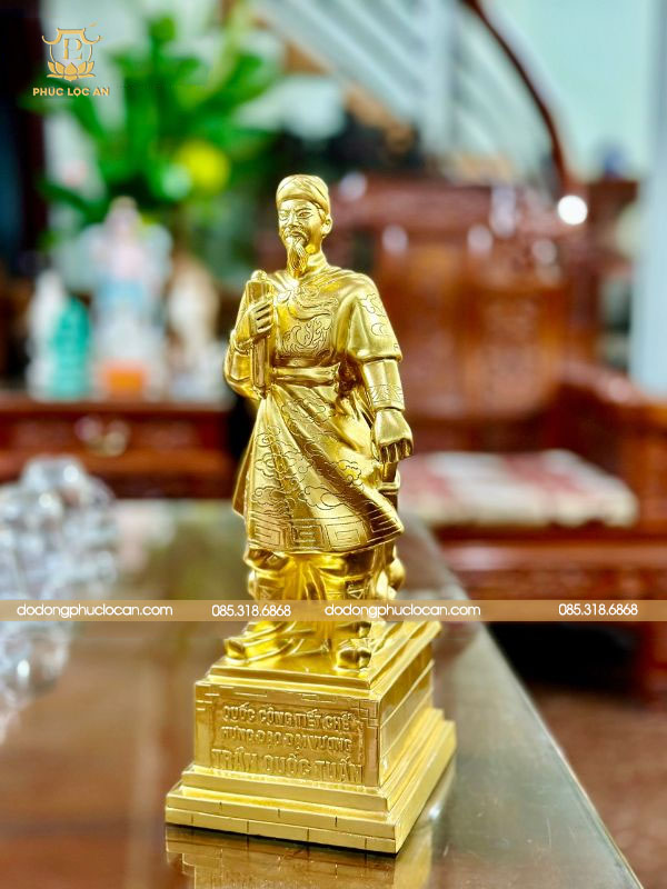 Liên hệ Phúc Lộc An để đặt mua tượng Trần Quốc Tuấn bằng đồng dát vàng cao 38cm – biểu trưng cho trí tuệ, uy dũng và tinh thần bất khuất của dân tộc Việt Nam.