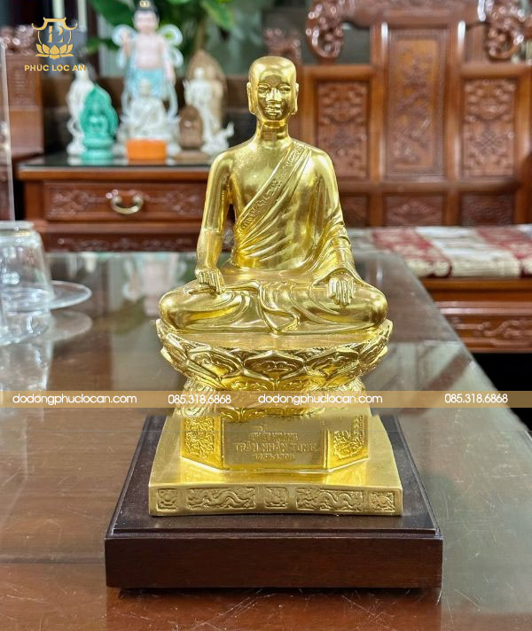 Liên hệ ngay Phúc Lộc An để đặt chế tác Tượng Phật Trần Nhân Tông bằng đồng cao 23cm dát vàng – biểu trưng cho trí tuệ, từ bi và lòng biết ơn sâu sắc của người Việt.